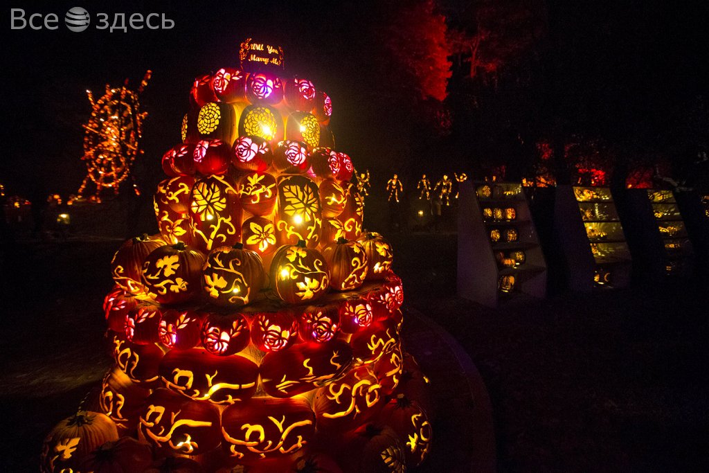 Каждый год выставку Great Jack O' Lantern Blaze организуют в Нью-Йорке. Приурочена она к празднованию веселого Хеллоуина и проводится к концу октября. На выставку подготавливают тысячи работ, которые выполняются из самого осеннего овоща - тыквы. Известно, что на изготовление шикарной экспозиции этого года было использовано больше семи тысяч овощей. Тыквенные перила, роботы, настоящий тыквенный торт, арки из овощей, ладони, гербы, рожицы, домики – что только не пришло в голову умельцам. Тыквенно-ужасное зрелище собрало множество зрителей, однако они были восхищены намного больше, чем были испуганы.