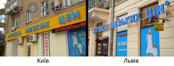 Иван Вербицкий блогер из Львова, опубликовал фотографии, которые иллюстрирурют разницу в размещении вывесок в столице и во Лькове. Артор погулял по центру во Львове, обращая внимания на вывески на проспектах Шевченко и Свободы, а также на улице Франко, потом поехал в Киев, поглядывая на вывески улиц Крещатик, Бассейная, Толстого, Сагайдачного и Владимирской.