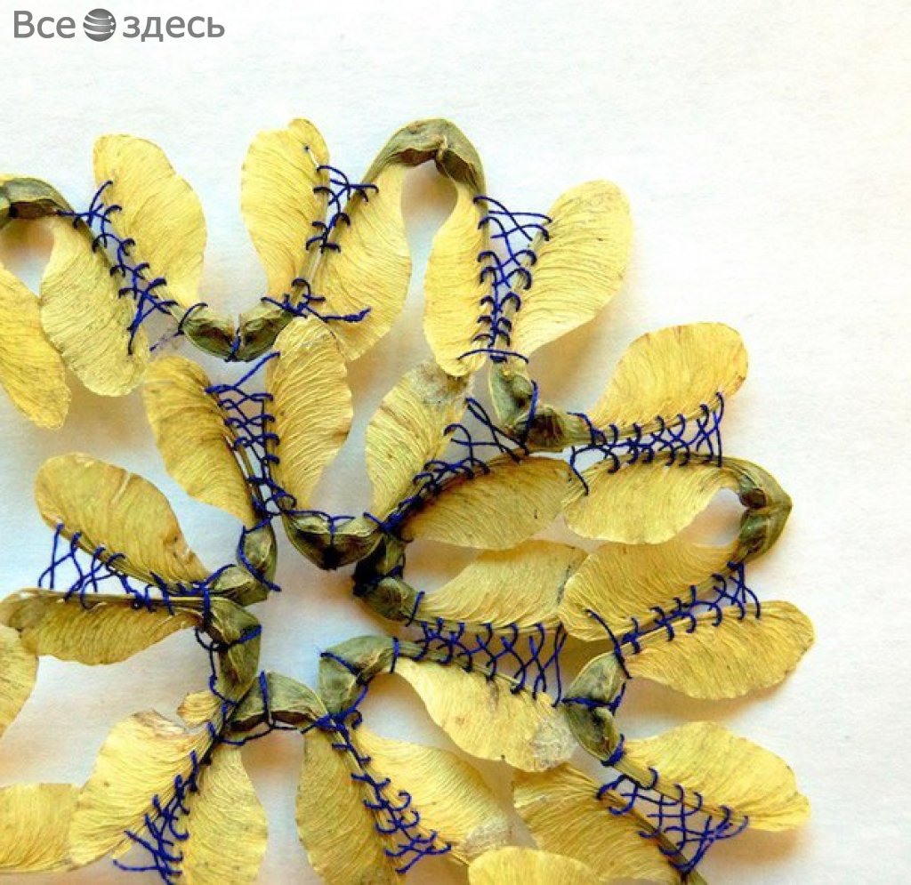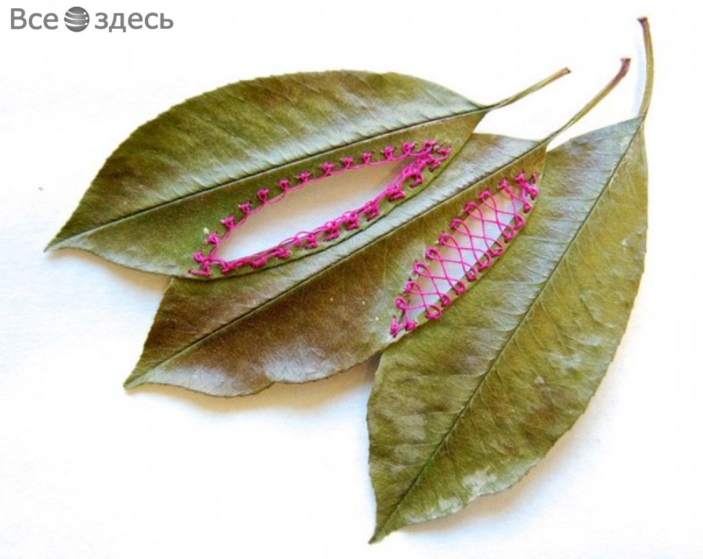Вышивка на листьях от Хиллари Фейл