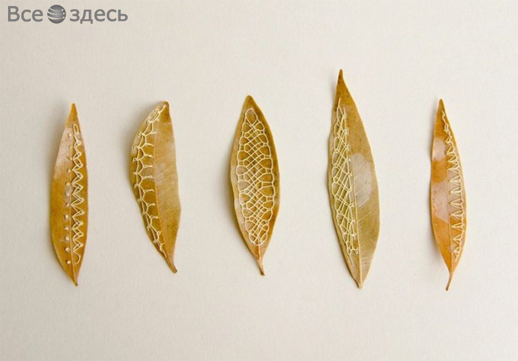 Работы Хиллари Фейл (Америка) просто ошеломляют хрупким изяществом. Сложно представить, сколько же труда и во истину невероятного терпения рукодельница вкладывает в такие «вышитые» листья.