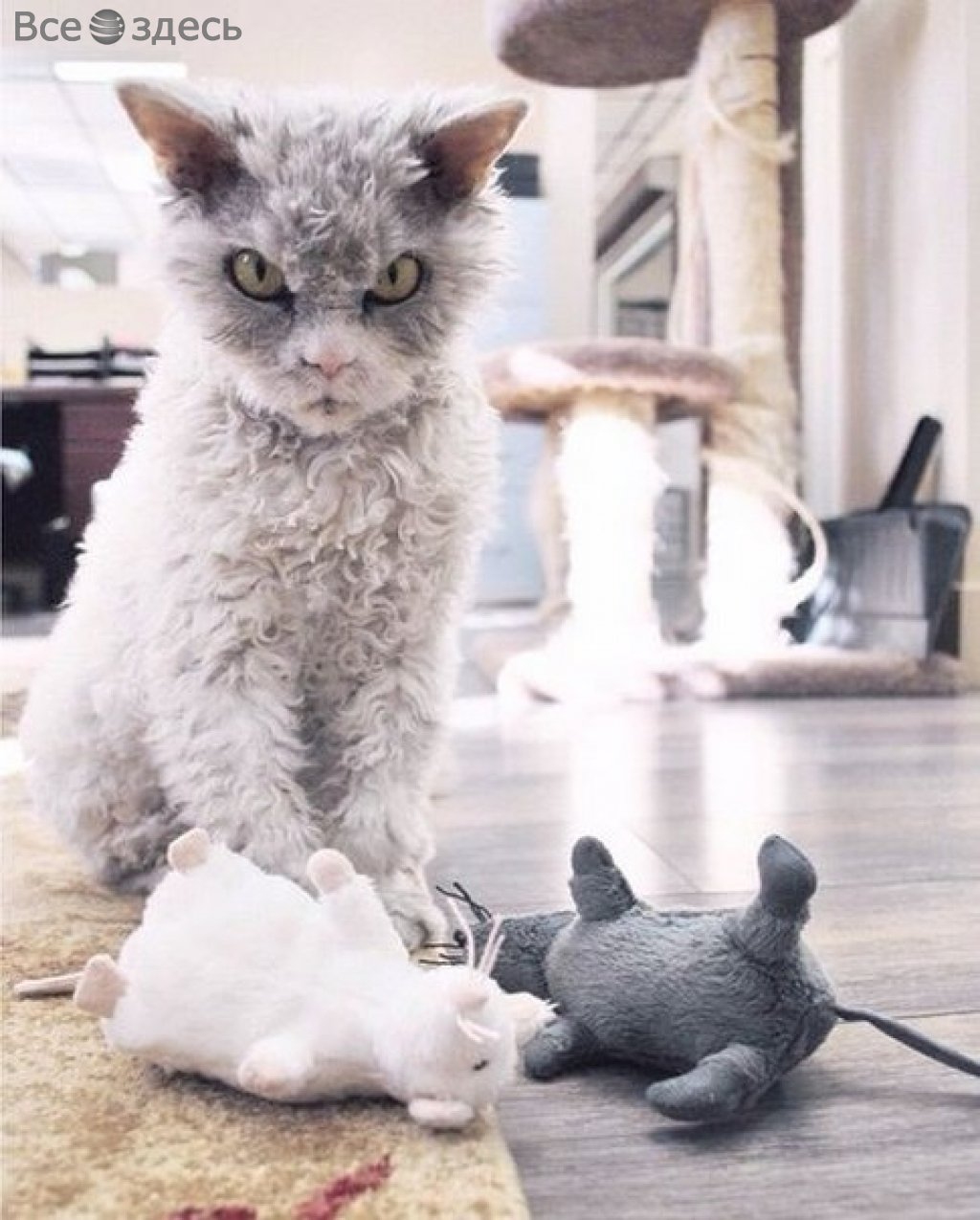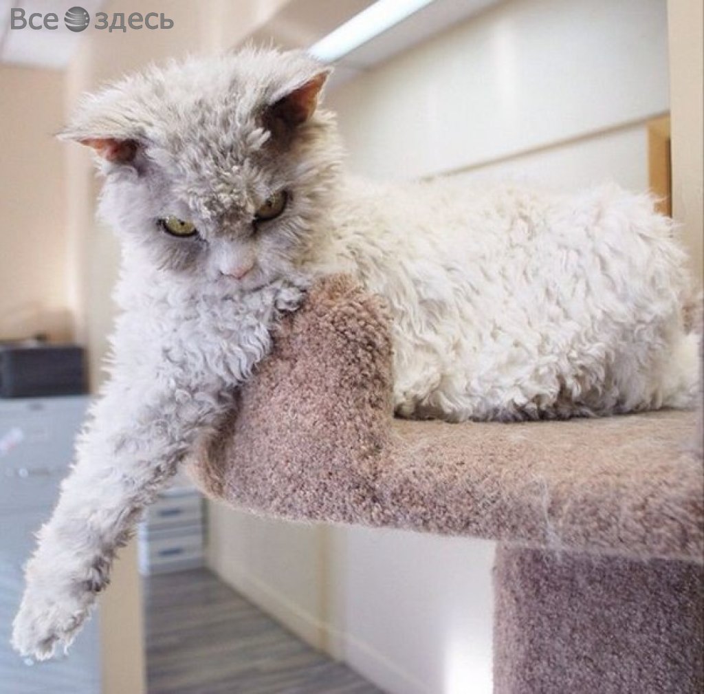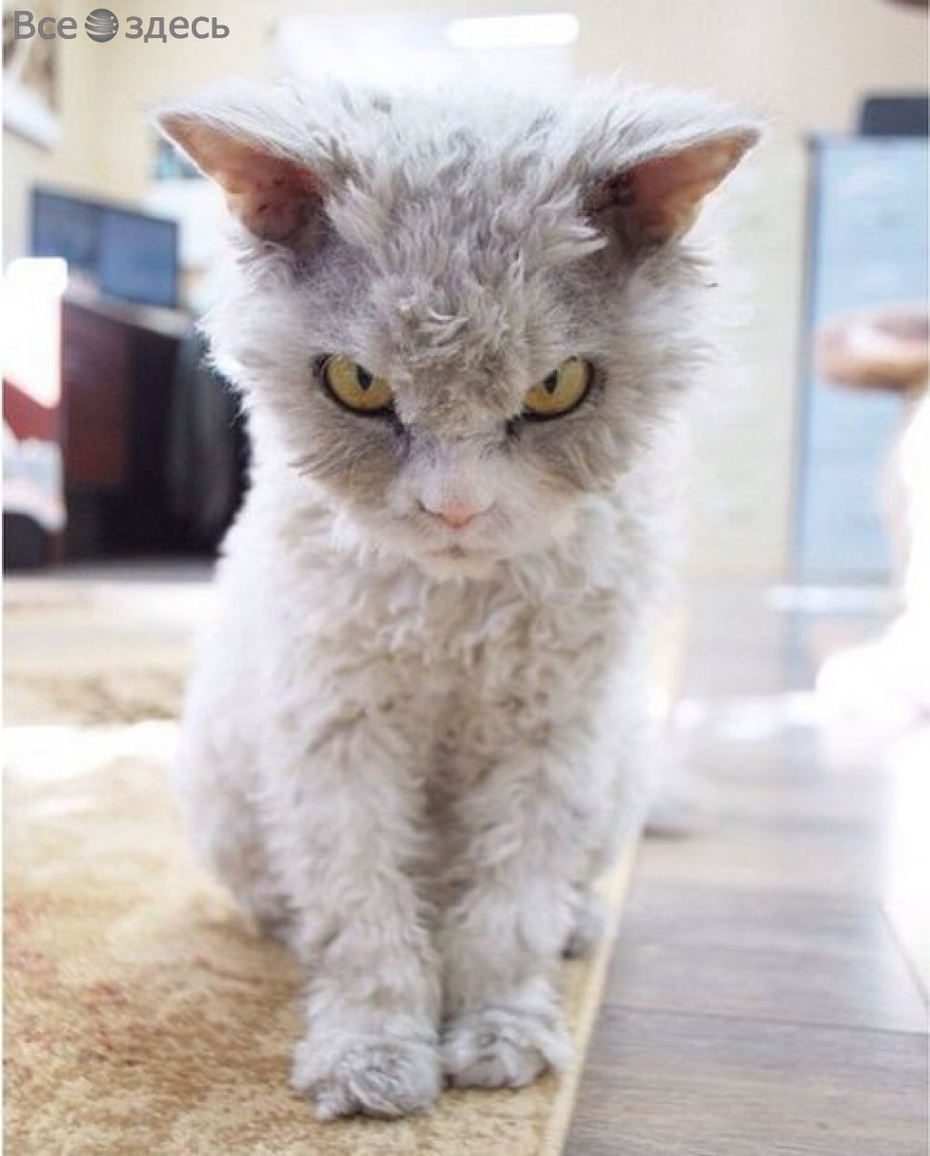 Кота породы селкир-рекс назвали Альбертом в честь знаменитого Эйнштейна. На самом деле он не злой, просто у котейки генетическая мутация. При ней у кошачьих шерсть растет очень густая, она больше напоминает овечью. Помимо всего прочего, у представителей данной породы недоверчивое и даже по-своему злое выражение мордочки.