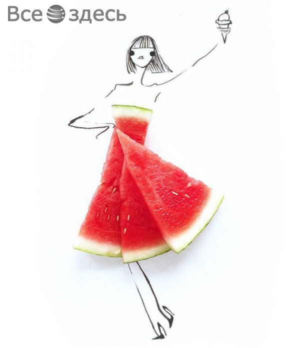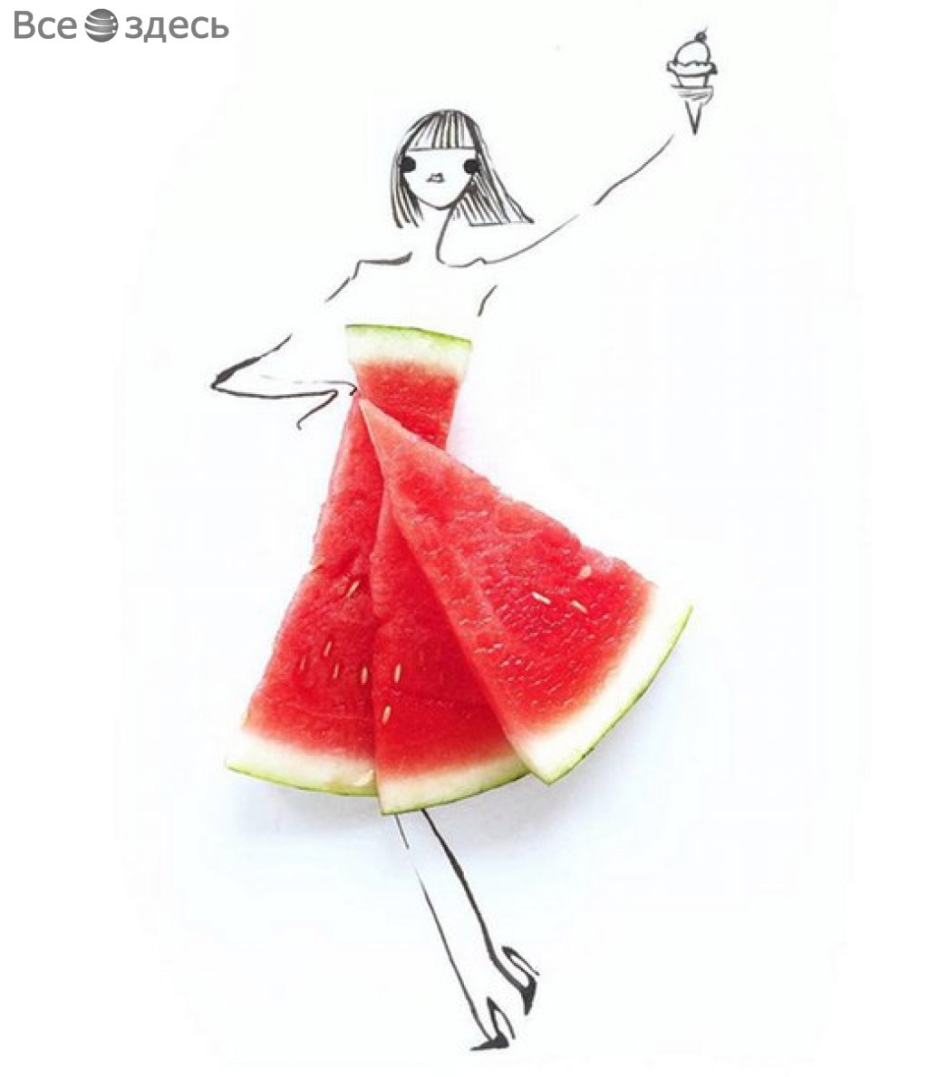 Гретхен Рёэрс, художница родом из Сан-Франциско, на странице в Инстаграме опубликовала не так давно целую серию интересных фэшн-иллюстраций. В них роль яркого завершающего элемента играют самые простые продукты. Конечно, идея не новая, мы уже когда-то показывали вам рисунки-композиции с остатками завтрака. Но срезы фруктов и овощей, представленные на данных работах, смотрятся действительно артистично, свежо и оригинально. Ведь платье из арбузной дольки также шикарно, как вечерний туалет из свекольной ботвы или роскошный банановый комбинезон… Не верится? Посмотрите сами!
