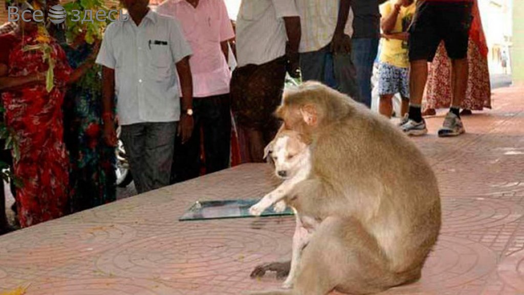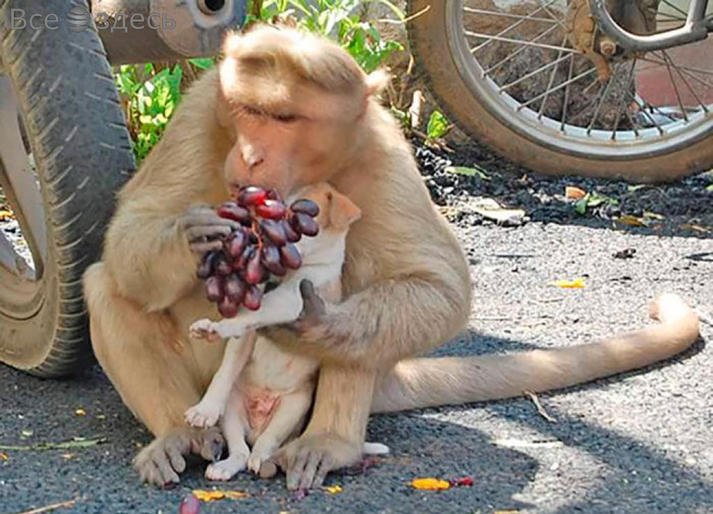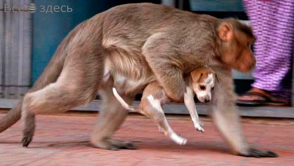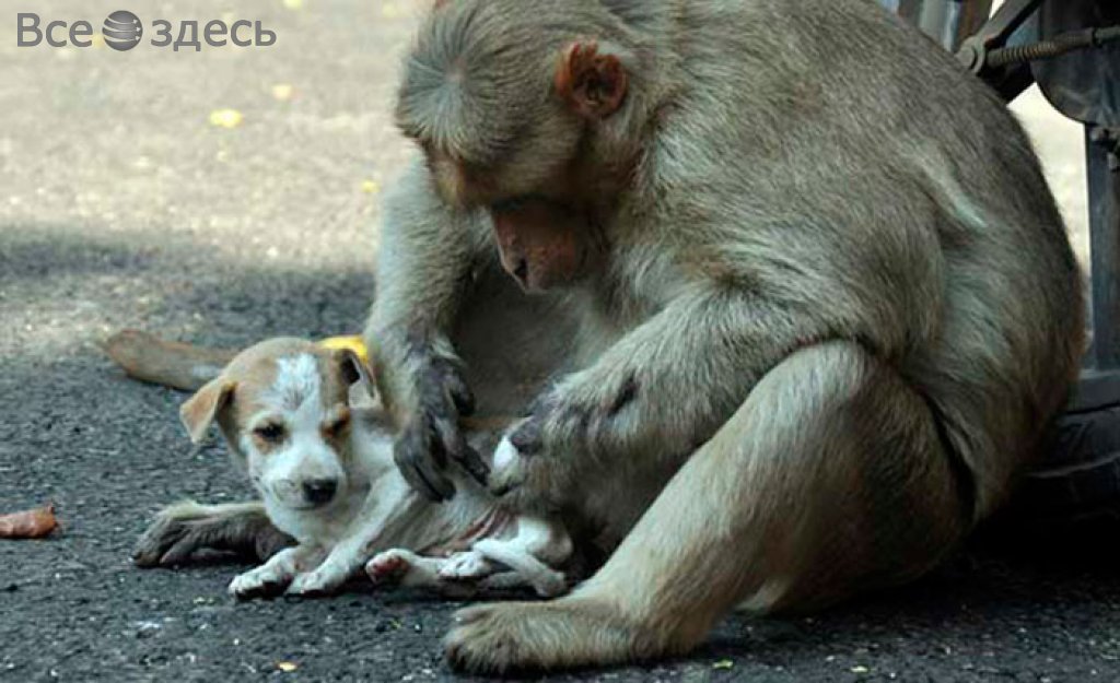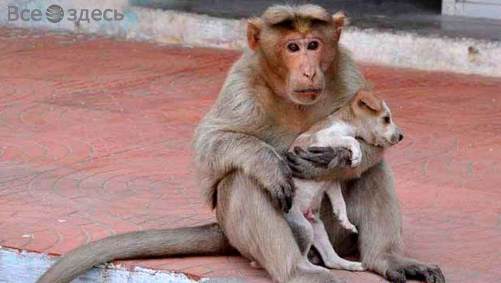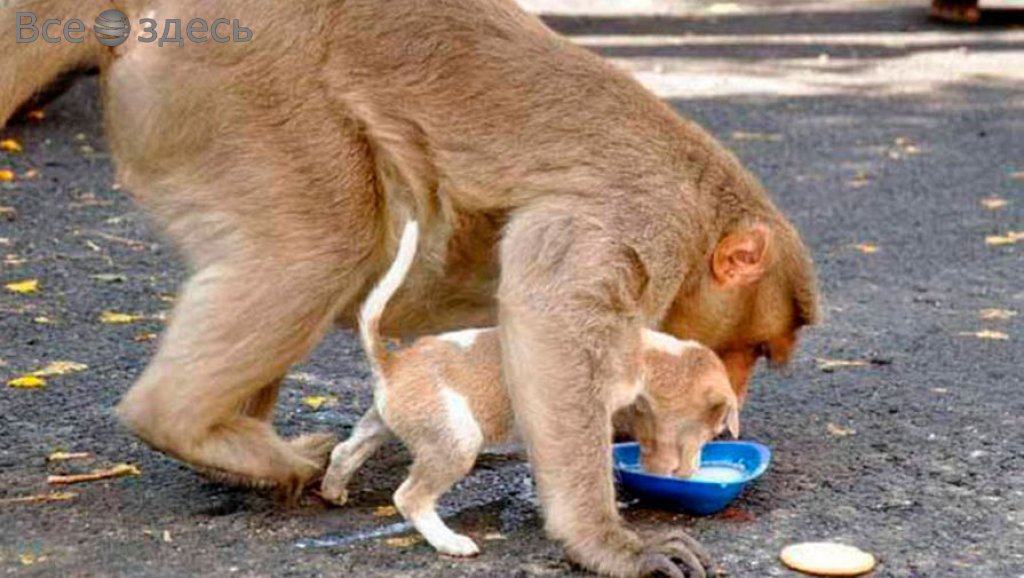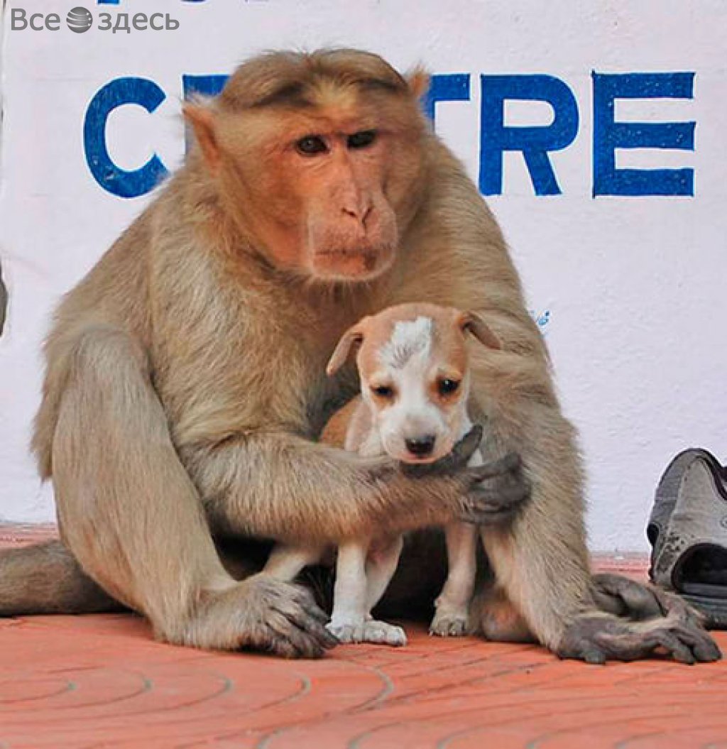 Периодически природа допускает странные сбои, и животные различных видов находят внезапно общий язык. Следующая история продолжается, удивляя не только видавших уже многое местных жителей, но также многочисленных туристов, приехавших в Индию. Обезьяна там спасла от злых бродячих собак маленького щенка. А потом… решила усыновить его. Теперь макака трепетно заботится о малыше, кормит его, ухаживает, оберегает от внешних посягательств. Видно на следующих водах, что приемная мама старается везде брать щенка с собой. Малыш, вроде и не против, возможно, он еще просто и не осознал, что относится несколько к иному виду, разительно отличаясь от своей защитницы.