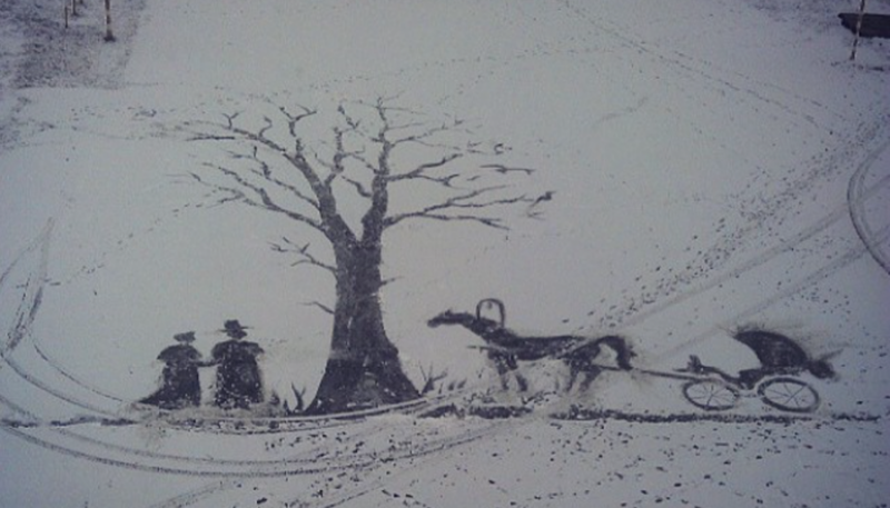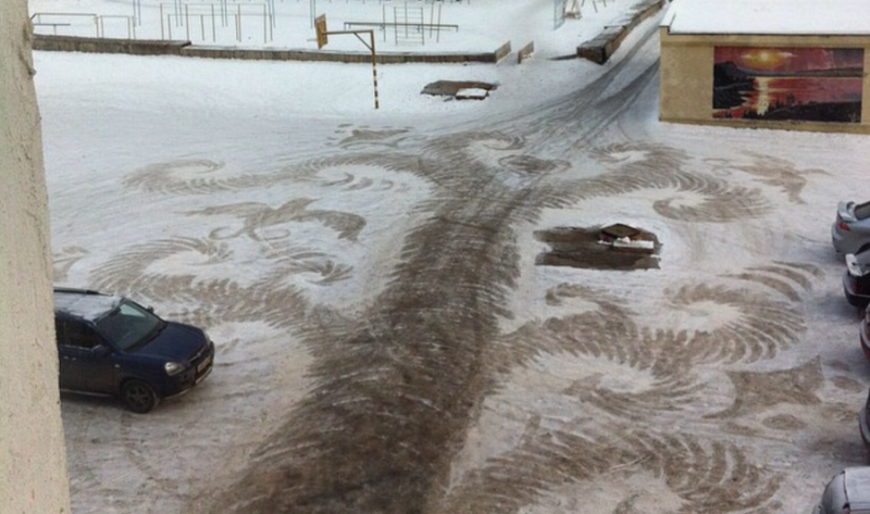 Для демонстрации своих работ художник даже завел отдельный аккаунт в соцсетях. И теперь невероятные картины на снежных полотнах, которые были нарисованы метлой, увидеть могут тысячи пользователей.