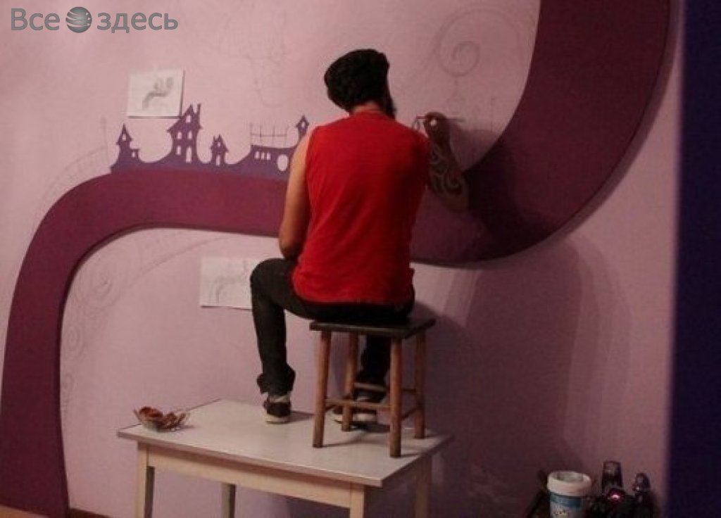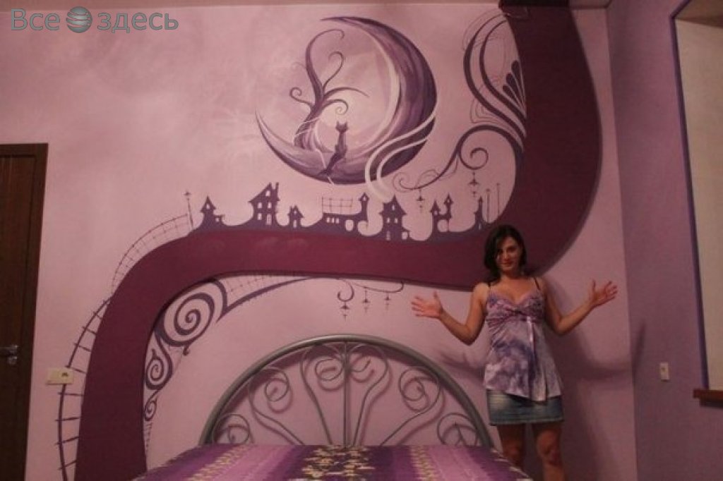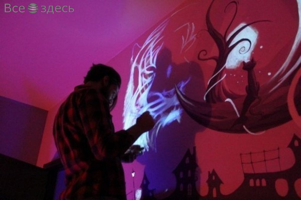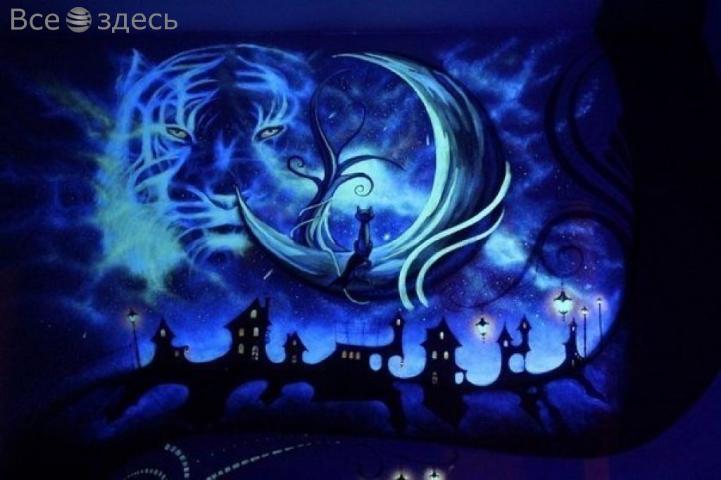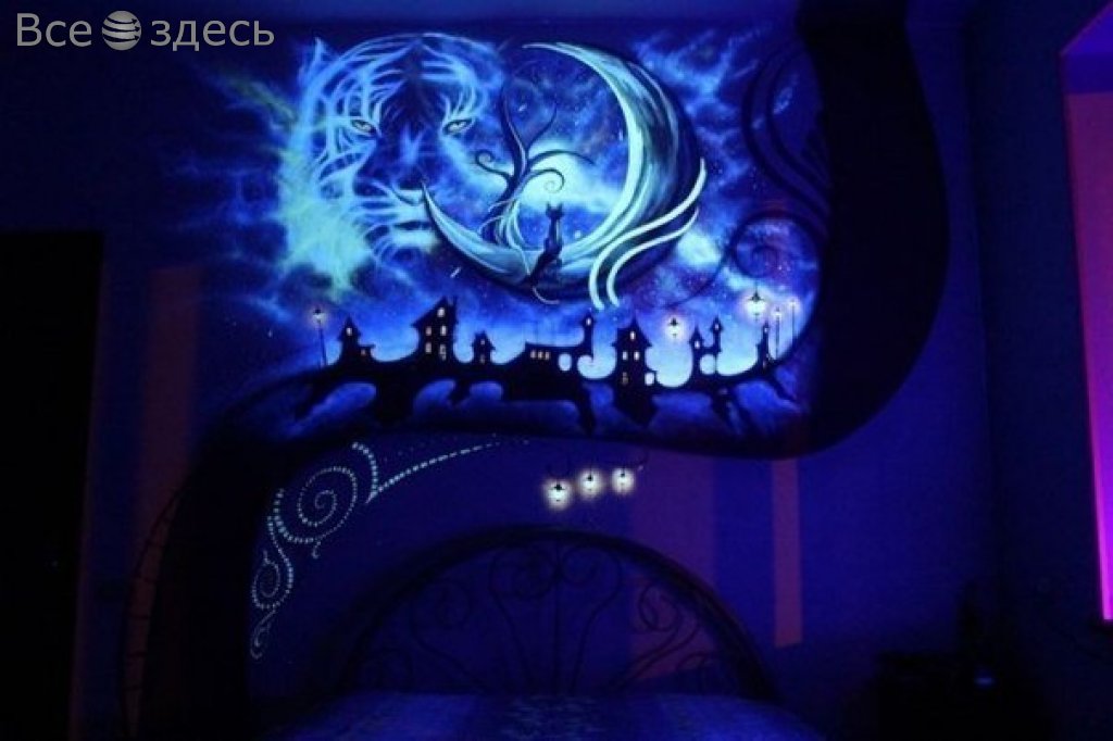 Ввиду этого, чтобы воплотить свою мечту, она решила обратиться за помощью к Георгию Махарашвили, известному художнику. Он разрисовал стену, используя во время своей работы обычную краску, наравне со специальными флуоресцирующими пигментами. Стоит ли говорить, что Кети была просто в восторге от того, как получилась эта интересная задумка!