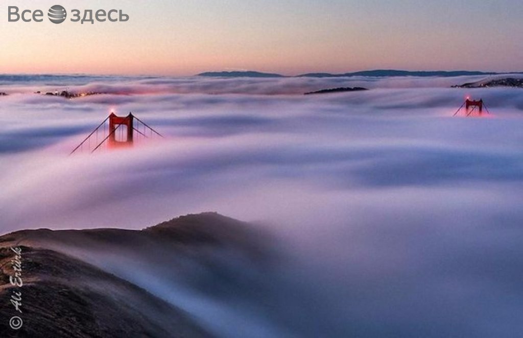 Висячий мост, который носит гордое название Золотых Ворот возвышается в Сан-Франциско. Его считают практически самым узнаваемым американским символом, который просто обожают туристы из самых разных стран. Он был построен в 1937 году, над проливом. Его цель – соединение Сан-Франциско с ближайшим округом - Марин. Некоторое время он был самым длинным строением такого предназначения в мире. Кроме того, Золотые ворота по праву называют наиболее фотографируемым мостов в мире. И если же вы обратите внимание на те кадры, сделанные немецким фотографом турецкого происхождения по имени Али Эртюрк, то поймете почему. И кажется, будто на этих фото он буквально ныряет иногда в пену из облаков, пропадая и снова выныривает из нее.