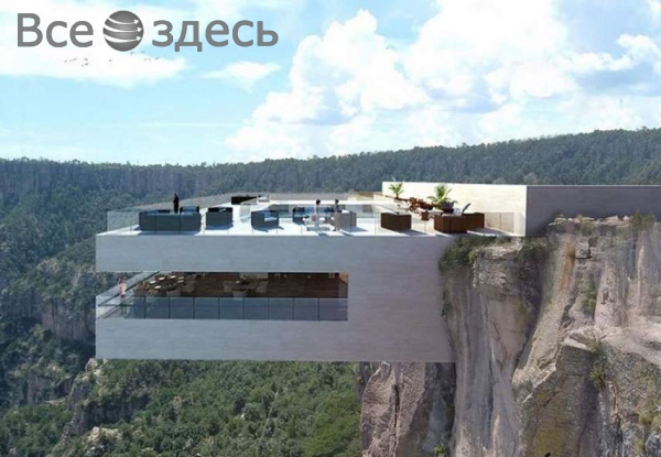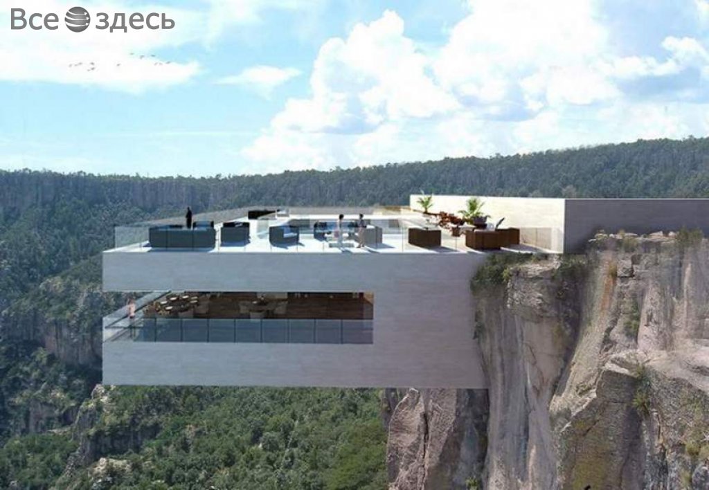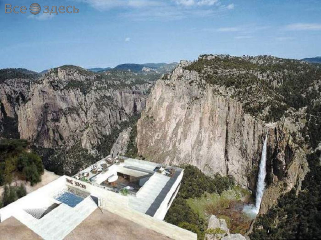 Бар придумали и спроектировали архитекторы компании Tall Arquitectos. Его назвали Copper Canyon Cocktail Bar. Отметим, что бар находится напротив Басасеачи – мексиканского водопада. Его это делает еще более красивым. У бара, вне сомнений, нет отбоя у посетителей. Ведь каждому интересно испытать себя. У бара есть два уровня. На верхнем пространстве – столики и бассейн. А на нижнем уровне, выпирающем из скалы – барная стойка. Не все могут собраться с силами и сходить вниз за коктейлем, потому что для этого надо идти по полу из стекла, а сквозь него видно всю долину.