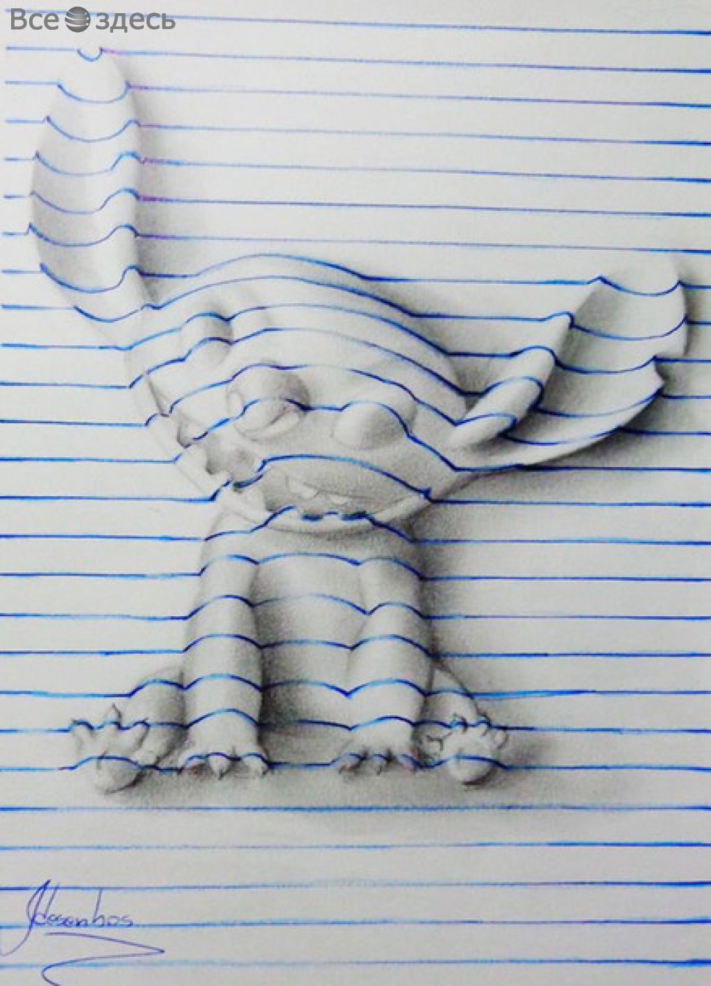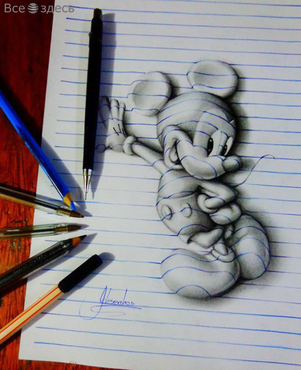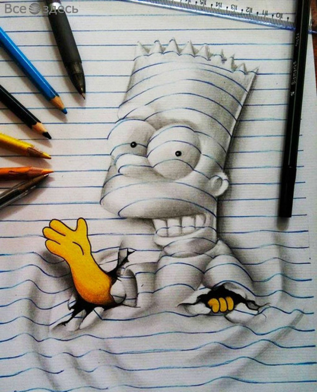 Так юный художник-самоучка линии искажает прямо в своем блокноте, добавляет иллюстрациям, имеющими глубокие и насыщенные цвета. Практически все удивительные работы этого автора увидеть можно на его страничке в соцсети Facebook. Зигзаги, повороты и линии, интересные переплетения, объемные элементы, вдруг выныривающие прямо из бумаги, завораживают нашу фантазию, перепутывая впечатления от увиденного.