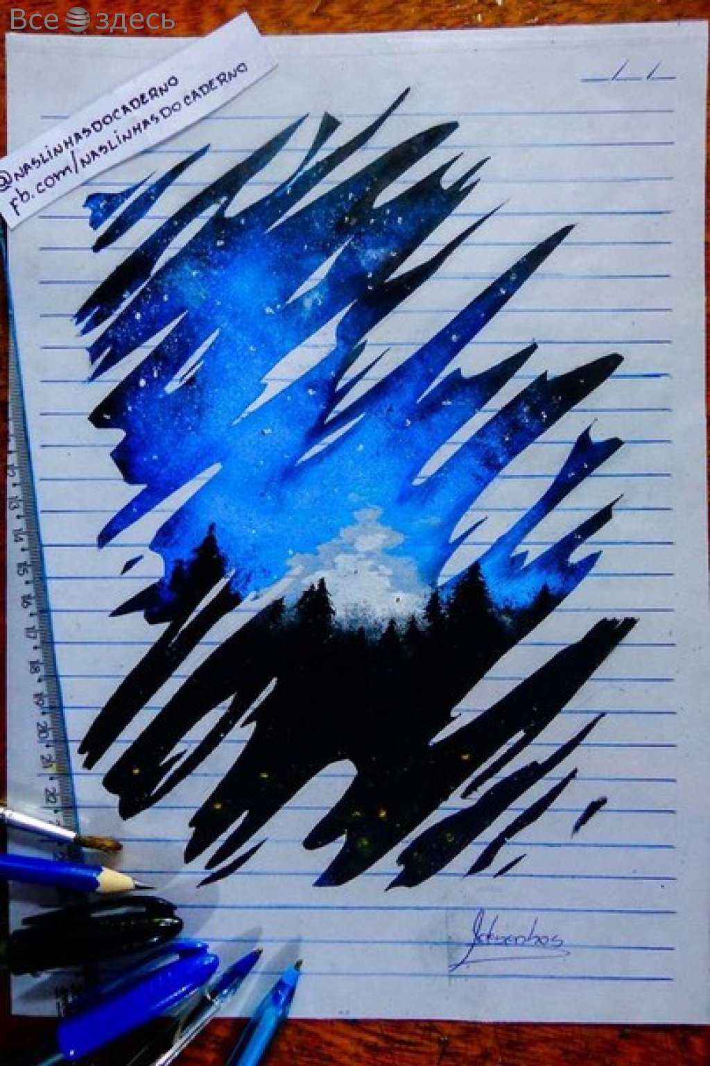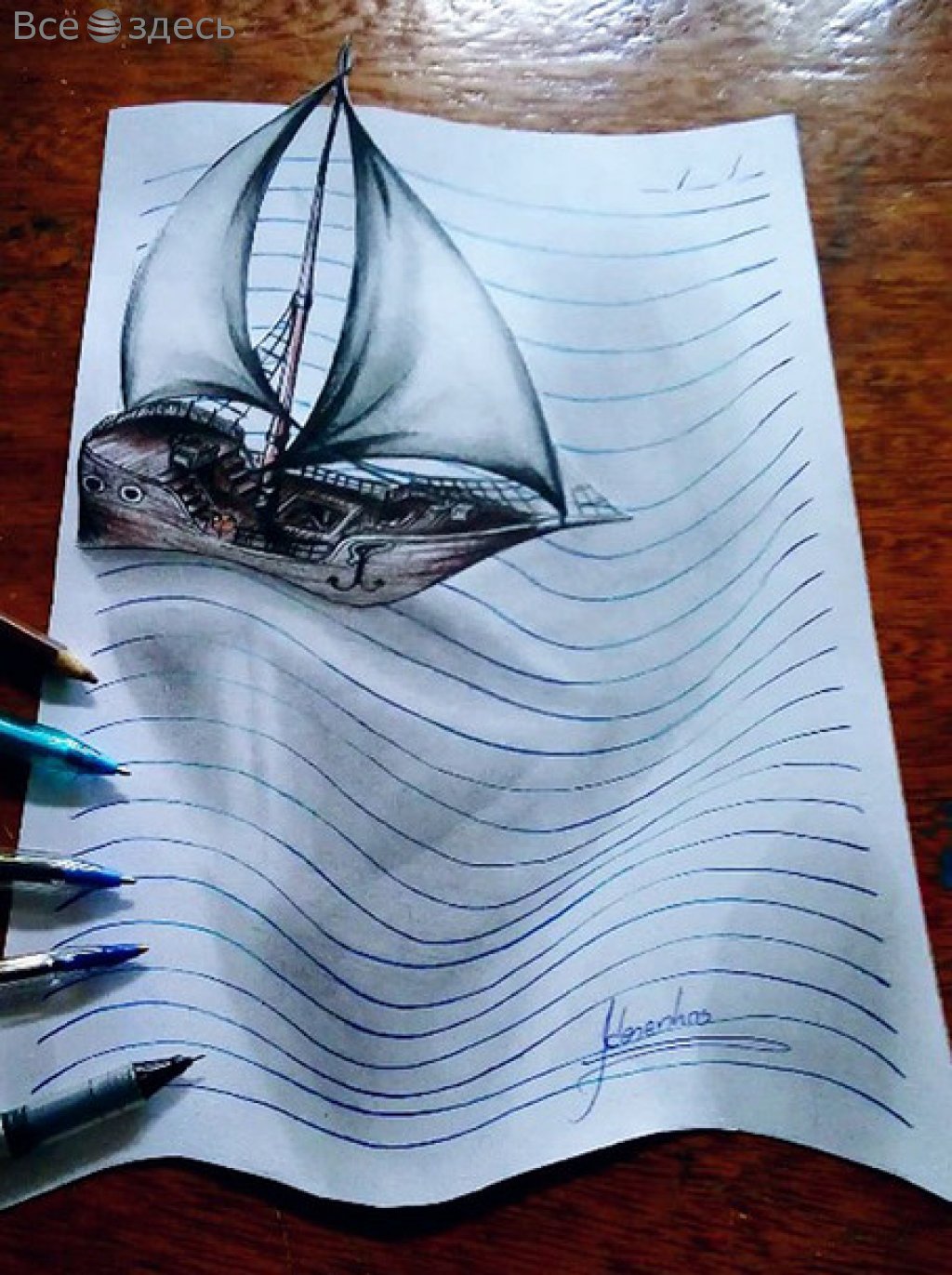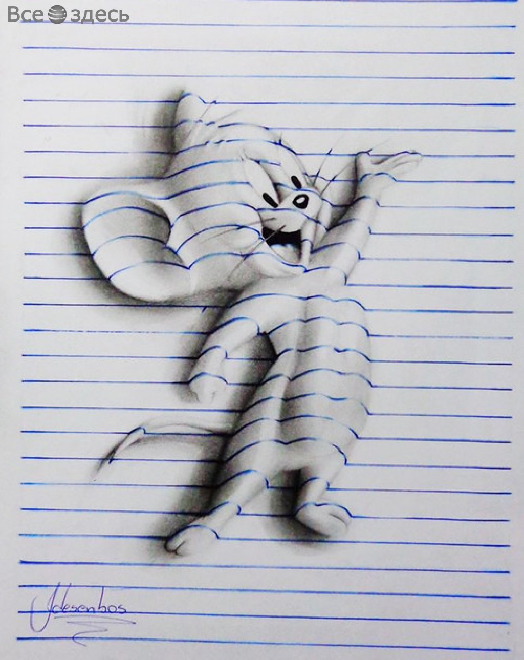 Так юный художник-самоучка линии искажает прямо в своем блокноте, добавляет иллюстрациям, имеющими глубокие и насыщенные цвета. Практически все удивительные работы этого автора увидеть можно на его страничке в соцсети Facebook. Зигзаги, повороты и линии, интересные переплетения, объемные элементы, вдруг выныривающие прямо из бумаги, завораживают нашу фантазию, перепутывая впечатления от увиденного.