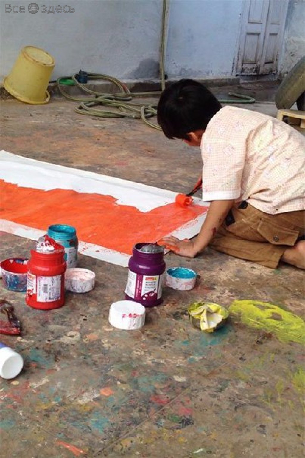 Он тратит на работы, в среднем, около четырех дней. У маленького гения есть стиль – нанесение трех-четырех слоев краски различных цветов.