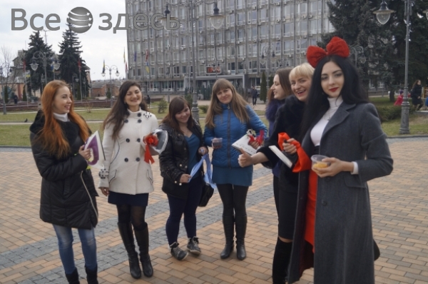 Оригинальный флешмоб провели молодые девчата в Виннице в минувшую субботу, двадцать шестого марта. Вооружившись обыкновенными домашними утюгами, они отправились на улицы города. Девушки предлагали проходившим мимо мужчинам «погладить» их утюжком. Они также угощали представителей сильного пола сладенькими гостинцами, которые те уплетали с большим удовольствием. А еще красавицы «приставали» к мужчинам с вопросами, хорошо ли они выглядят. Каждая такая встреча заканчивалась улыбками, шутками и полным взаимопониманием.