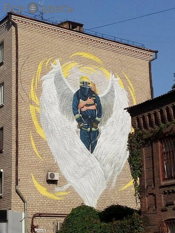Очередное творение появилось в центре Днепра по улице Князя Владимира Великого. Работал над мурал уже известный в своих кругах стрит-артщик Zdes Roy. В этот раз художник изобразил сотрудника пожарной службы, которого сзади обнимает ангел. Таким образом автор хотел поблагодарить спасателей за их смелость и отвагу в спасении людских жизней.