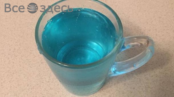 Так, в одной из квартир столицы из крана полилась вода кислотно-голубого цвета (смотреть фото). К слову, необычного цвета жидкость лилась в квартире пресс-секретаря заместителя председателя КГГА по вопросам осуществления самоуправленческих полномочий Ирины Золотарь.