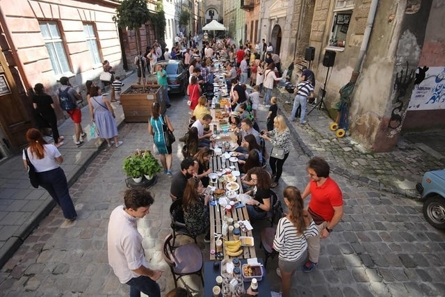 Сотни львовян позавтракали за общим столом на ул. Армянской