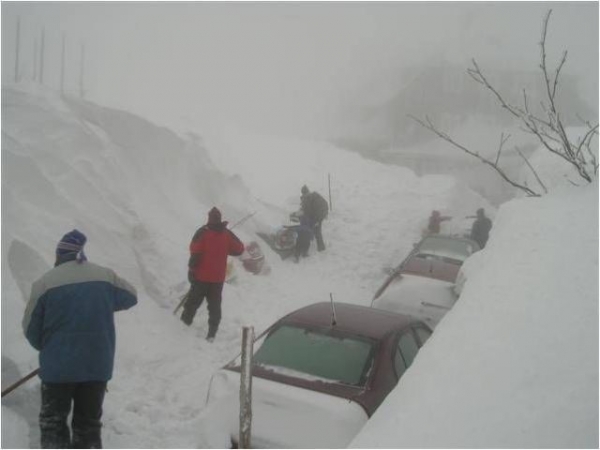 Несмотря на то, что температура воздуха была всего лишь -6 градусов, японцы не смогли перенести сильнейшего ветра со снегом и практически нулевой видимости, которая была во время непогоды.