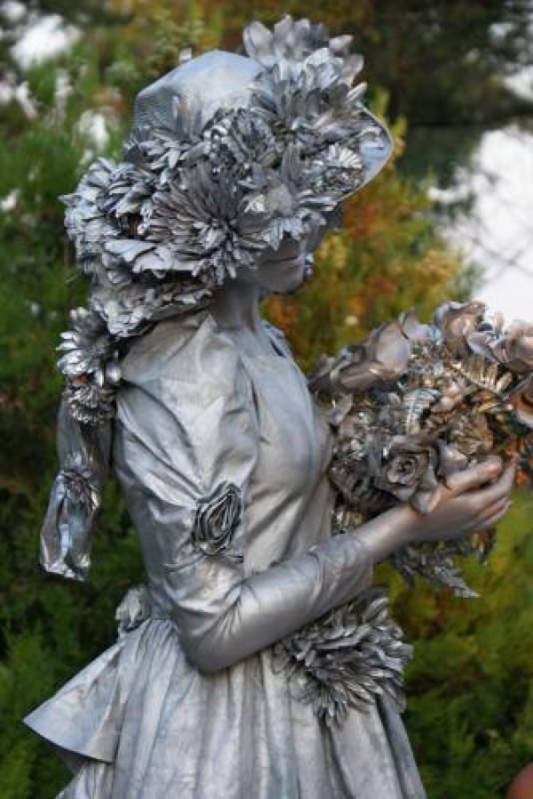 Нашему корреспонденту удалось пообщаться с одной из живых статуй. Елена работает в театре скульптур уже четвертый год. Она признается, что вначале было очень трудно. Особенно тяжело не реагировать на людей, которые что-то спрашивают, а требуют от статуи ответа. «Вы же знаете, какой у нас бывает зритель…Особенно «под градусом». В тоже время приятно видеть восхищение в глазах, приятно дарить людям радость. Интересно наблюдать за теми, кто впервые видит живую статую. Они пытаются понять – человек перед тобой, кукла или скульптура. Долго всматриваются, а потом очень радуются, когда угадывают, что это все-таки человек», - рассказывает девушка, - «Перед выходом «в люди» мы накладываем специальный грим, конечно, в летнее время от него очень жарко, иногда кожа нестерпимо чешется. Но это все мелочи, для настоящей статуи!». Изображала Елена и ангела, но любимая ее роль – серебряная дама с книжкой.