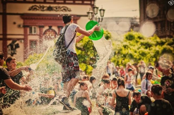 Еще одно различие с Одесской водной битвой – инициаторы флешмобы не рекомендуют использование ведер, и ограничивают территорию побоища площадью вокруг фонтана.