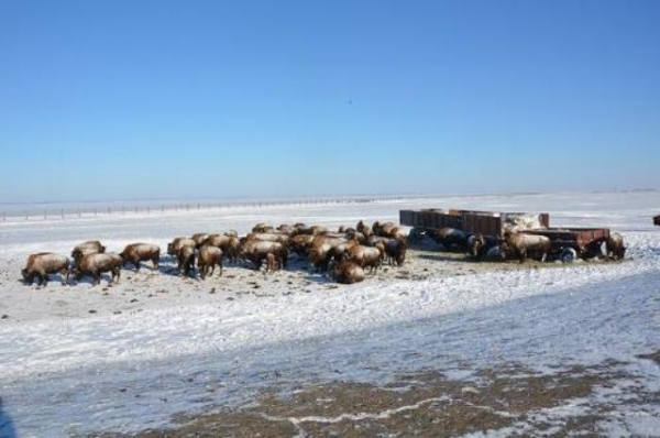 Из тракторных прицепов была оборудована своеобразная «китайская стена», ее цель – защита животных от сильного восточного ветра. Им завезли сено, чтобы животным было чем прокормиться. Каждый день «стена» передвигается на пару километров в сторонку, потому что стаду надо двигаться. Конечно, обычно диких животных в заповеднике не подкармливают. Однако, в такие снега им приходится выдавать до пятнадцати тонн снега ежедневно. В заповеднике отмечают, что пока животных хватает провизии, однако, если холода затянутся, то около полторы тысячи голов крупных парнокопытных рискуют сесть на жесткую диету.