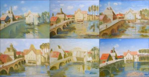 Над так называемыми, мультикартинами трудились шесть непровессиональных художниц. Среди них Оксана Лобода, Ирина Клименко, Мария Пастухова, Елена Колтунович, Нина Водопьян и Светлана Ружило. Каждая из авторов копировала одну и туже работу известного живописца, используя собственный художественный стиль. Все шесть вариантов помещаются в общую раму. Работы невероятно интересно дополняют друг друга, создавая неповторимый новый структурный образ.