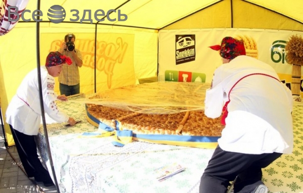 Руководитель реестра украинских рекордов зафиксировала уникальность этого изделия, после чего пампушка удовлетворила аппетит всех желающих.